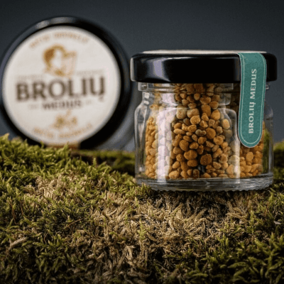 Me pakume mitte ainult traditsioonilist Leedu mett ja mesilasleiba, õietolm, kurgus pihustab pigi, kuid ka ainulaadseid tooteid, nagu mesi koos külmkuivatatud marjadega, šokolaad ja piimakommid meega. Broliai Bears puuviljamahla ja meekommi kuldmedaliga esikohal olevad puuviljamahla- ja meekommid„.